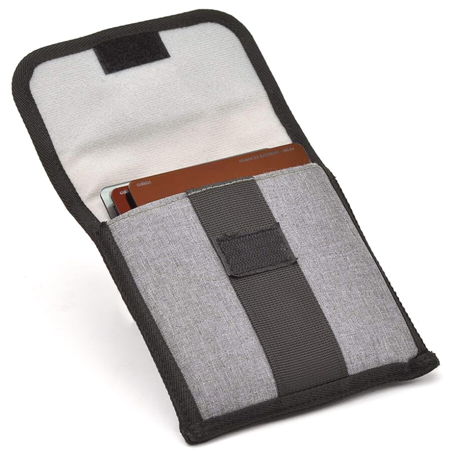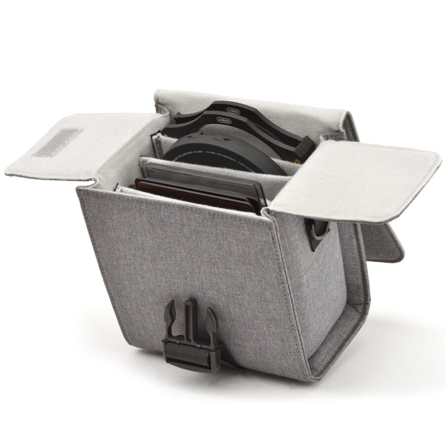The case is modular and includes a separated filter wallet to arrange up to 5 filters, a snap hook, a shoulder strap and a Velcro band to attach the carrying case to your tripod. A phosphorescent shutter speed guide is included to give the shutter speed when using a ND8, ND64 or ND1024 filter.