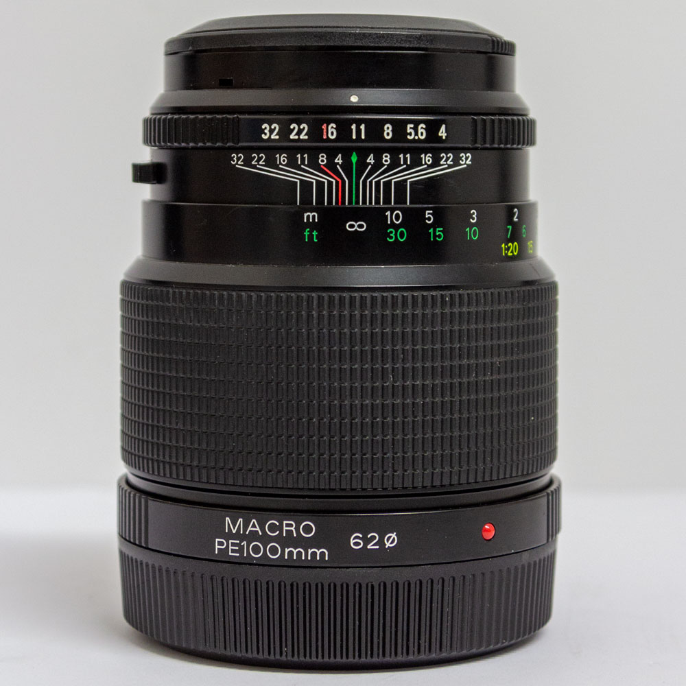 Bronica ETR 100mm F2.8 PE Macro. This is a great telephoto prime macro lens for the ETR system.