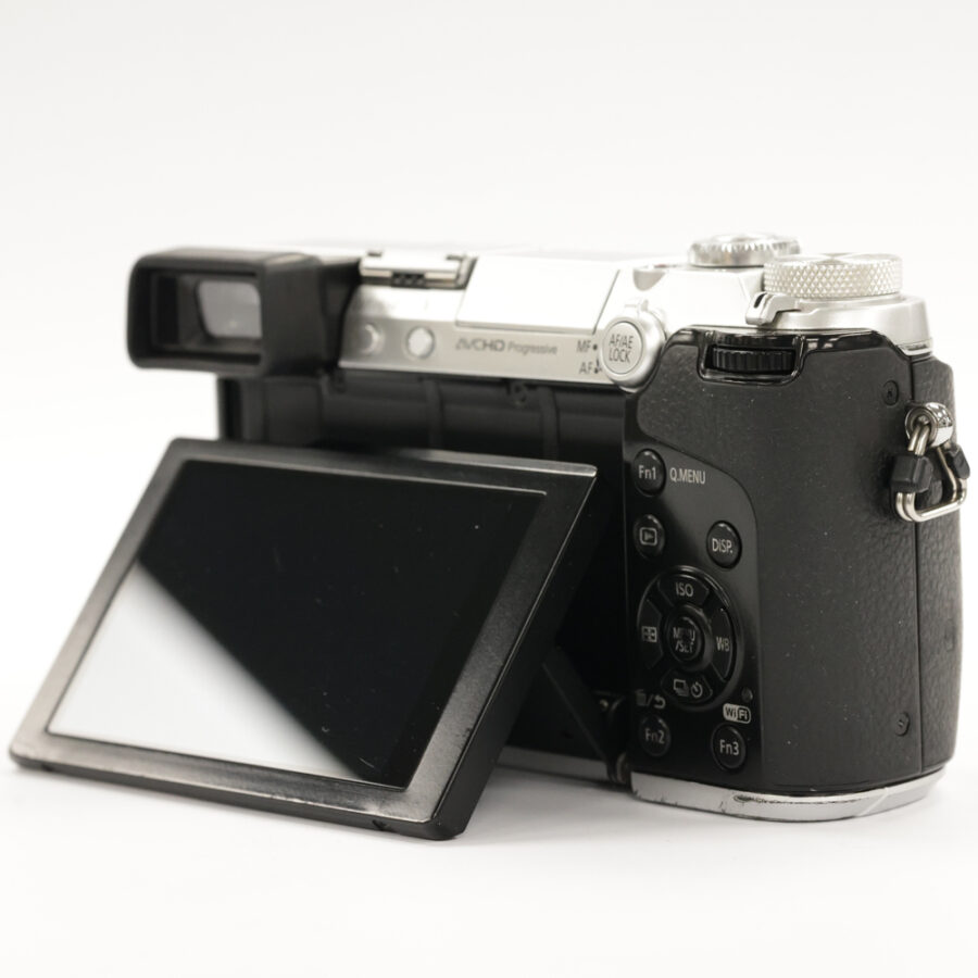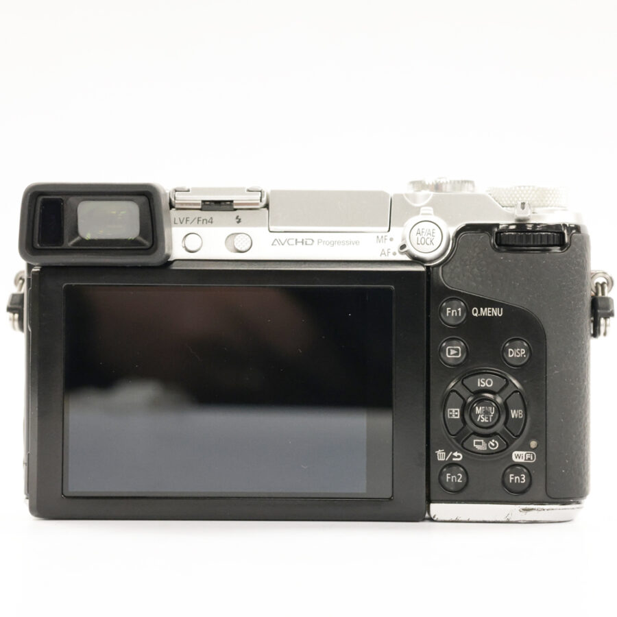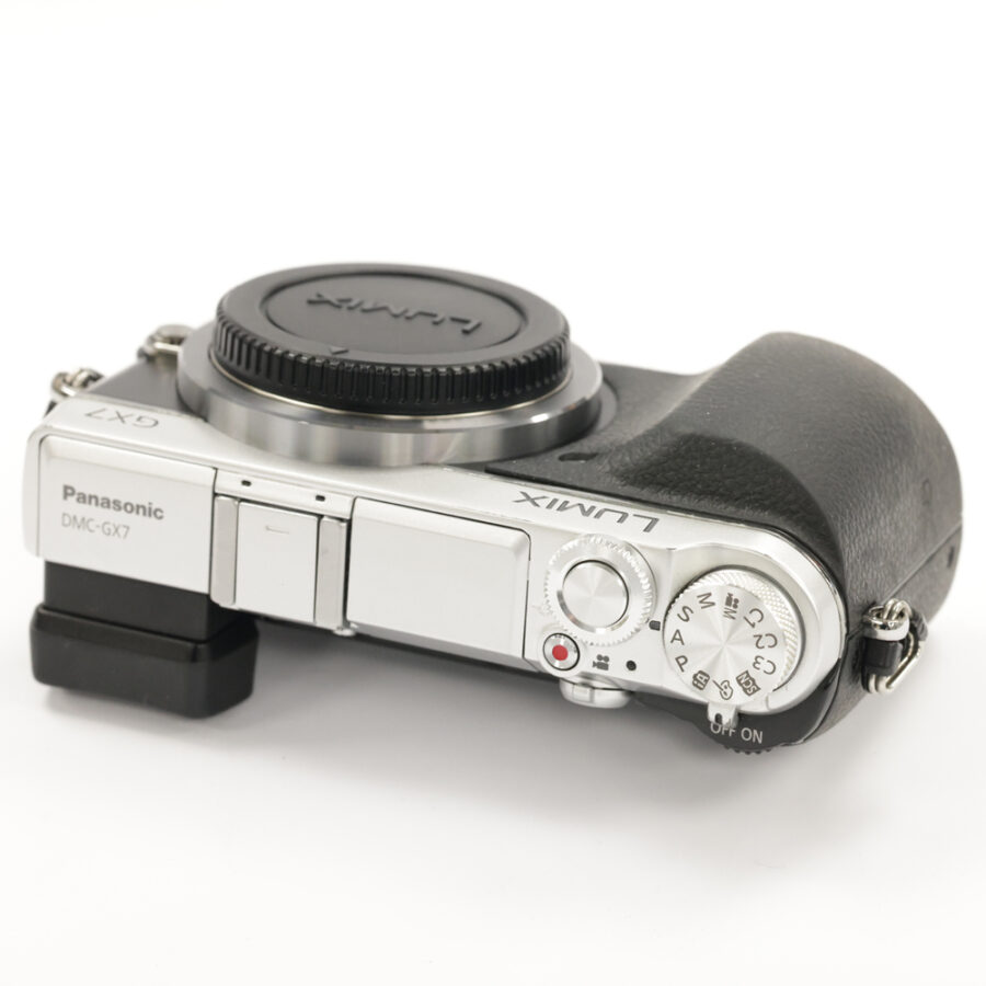 The Panasonic Lumix DMC-GX7 in silver is a popular, enthusiast-level mirrorless Micro Four Thirds camera, noted for its compact, rangefinder-style design, excellent image quality, and unique tilting electronic viewfinder.